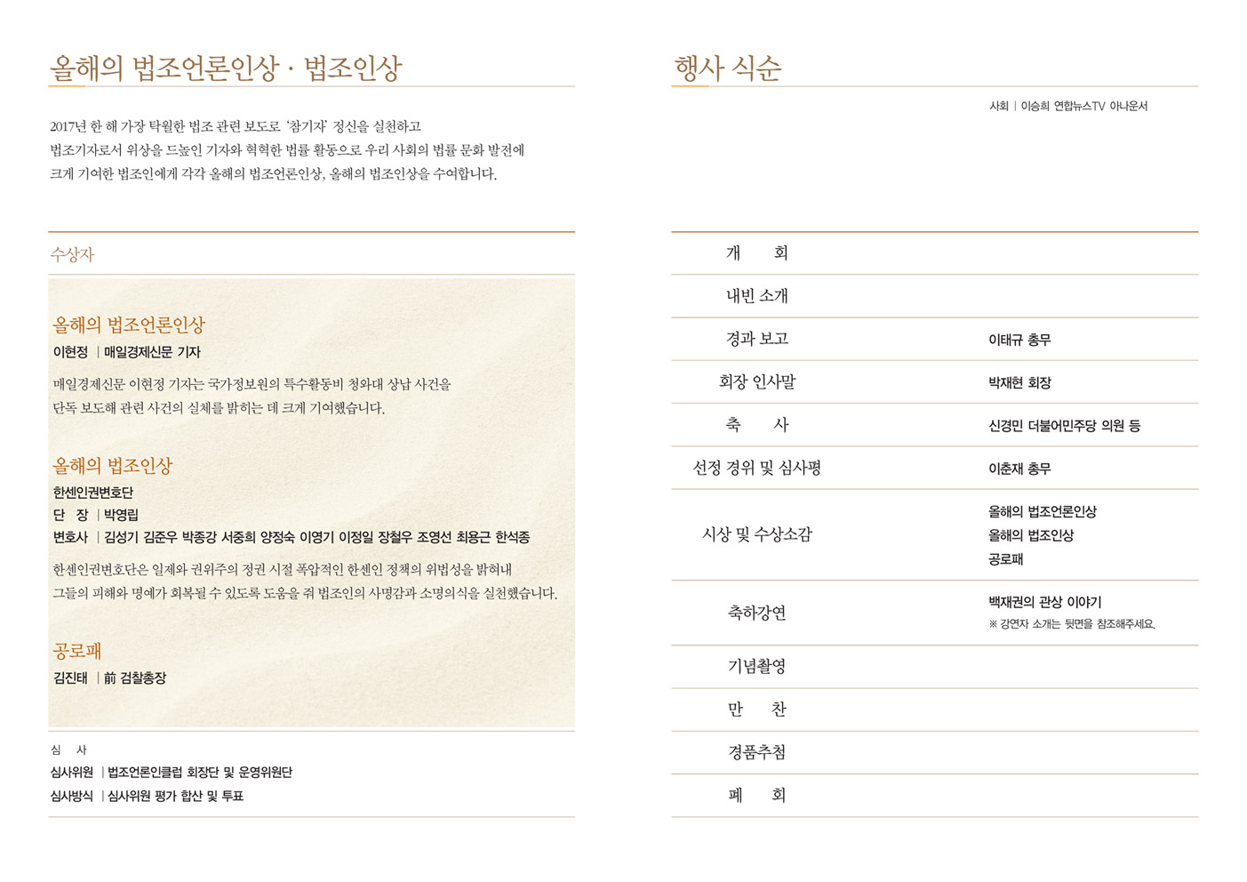¡®2017 ¿ÃÇØÀÇ ¹ýÁ¶¾ð·ÐÀλ󡯿¡ ¸ÅÀϰæÁ¦½Å¹® ÀÌÇöÁ¤ ±âÀÚ
