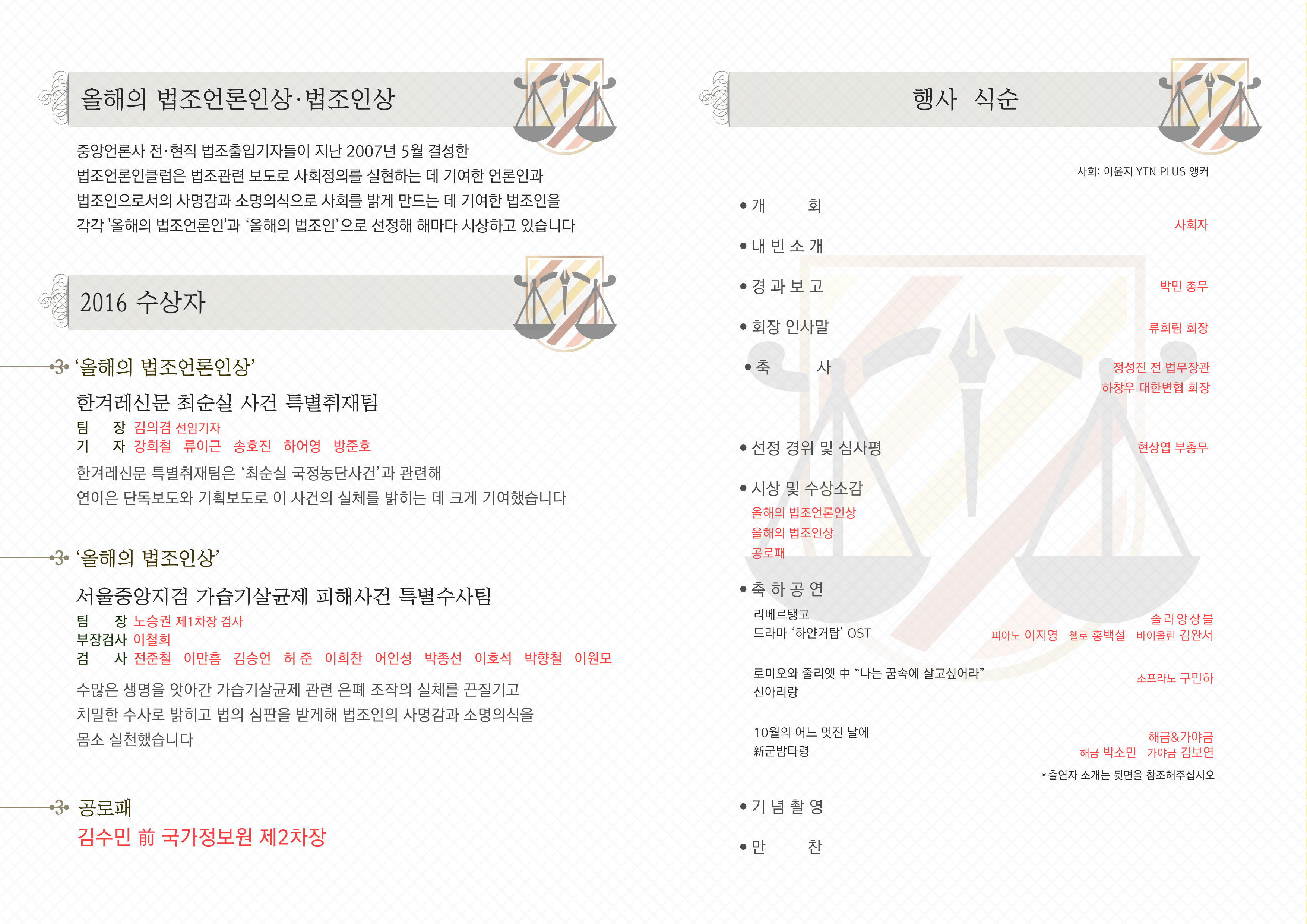 ±â¿©ÇÑ ¾ð·ÐÀΰú ¹ýÁ¶ÀÎÀ¸·Î¼ÀÇ »ç¸í°¨°ú ¼Ò¸íÀǽÄÀ¸·Î »çȸ¸¦ ¹à°Ô ¸¸µå´Â µ¥ ±â¿©ÇÑ ¹ýÁ¶ÀÎÀ» ¡®¿ÃÇØÀÇ ¹ýÁ¶ÀΡ¯À¸·Î ¼±Á¤ÇØ ÇØ¸¶´Ù ½Ã»óÇϰí ÀÖ´Ù.